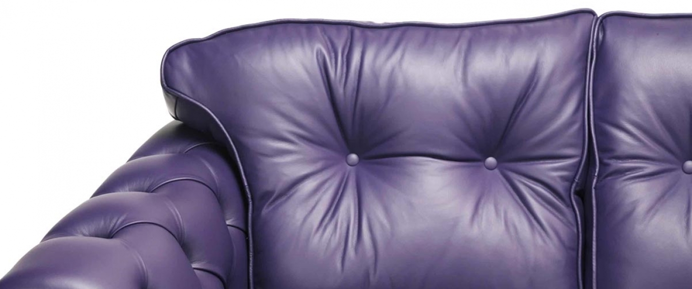 Ein besonderes Highlight dieses Möbels ist die charakteristische "Zick-Zack"-Musterung, die durch die Chesterfield-Buttons im Fußleistenbereich entsteht. Die Rückenpolster sind jeweils mit zwei stilvoll platzierten Knöpfen versehen, die dem Sofa eine exquisite Note verleihen.
